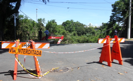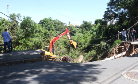 O trecho em obras da Avenida Major Acácio Ferreira, no Jd. Leonídia, em Jacareí, permanece interditado temporariamente, devido a um desmoronamento de terra às margens do Rio Paraíba, decorrente das últimas chuvas.