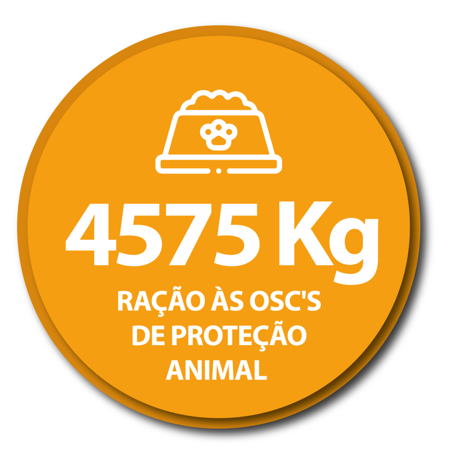 Foram doados 4.575 Kg de ração às Organizações da Sociedade Civil de Proteção Animal em Jacareí durante o período de 2021-2023