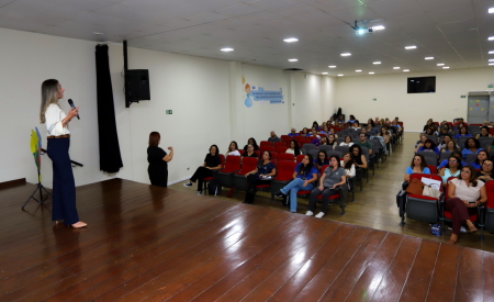 Realizado no auditório da Secretaria de Educação, a palestra inicial contou com a participação de pais e profissionais da área, com o tema “Estimular sem sobrecarregar – o equilíbrio necessário no TEA”.