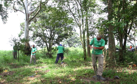 As mudas foram divididas e, do total, 500 delas estão sendo plantadas em frente a área da creche que está sendo construída e outras 400 mudas ficarão em uma área verde ao lado do EducaMais Parque Meia Lua.