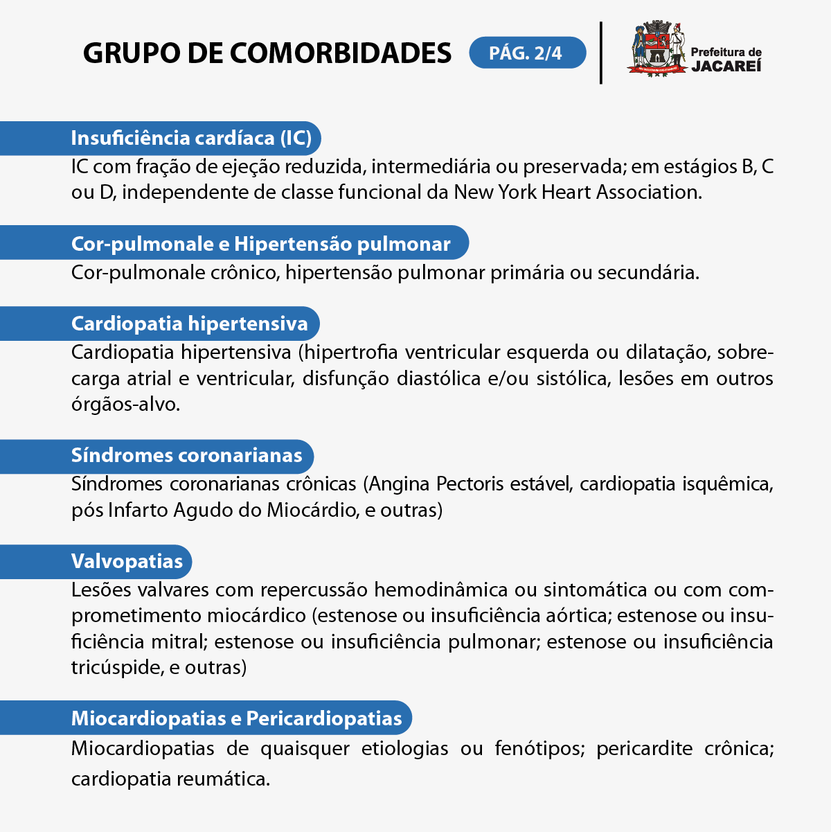 Confira, a seguir, a lista com a descrição das comorbidades incluídas como prioritárias para vacinação, de acordo com o Plano Estadual de Imunização. (Clique na imagem para ampliá-la)