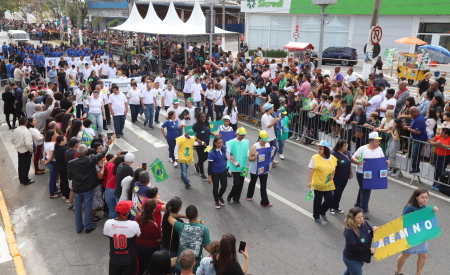 A Avenida Nove de Julho ficou lotada nesta quarta-feira (07), com a presença da população, que prestigiou o desfile cívico em comemoração à Independência do Brasil. A Prefeitura de Jacareí, por meio da Secretaria Municipal de Educação, levou para a avenida, o tema “Matematic@ndo ODS”.