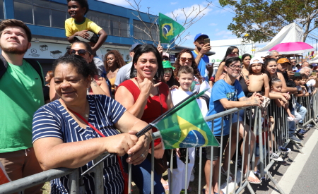 Legenda: População comparece ao Desfile Cívico de 7 de setembro na Avenida Nove de Julho