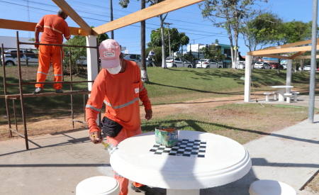 Foram realizados os trabalhos de calçamento, guias, sarjetas e plantio de grama no local, além de uma revitalização total com a troca do piso, canteiros e pergolado, podas de árvore, instalação de mais quatro bancos novos, paisagismo, iluminação de LED pela Secretaria de Infraestrutura, estacionamento para cinco carros pelas Secretarias de Mobilidade e Infraestrutura, construção do muro de divisa com a creche, acessibilidade para pessoas com locomoção reduzida e reconstrução do muro que faz divisa com a empresa Casa Branca, pela Infraestrutura.
