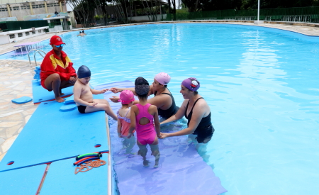 Legenda: Alunos participando da modalidades de Natação, no contraturno da aula.