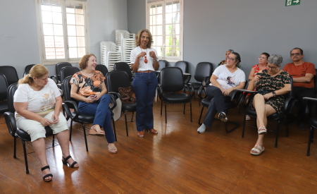 Neste primeiro encontro, os aposentados participaram de uma conversa sobre saúde física e mental com a médica Rita de Cássia Castro Oliveira, que atua em Unidade Municipal de Saúde da Família (UMSF) do município.