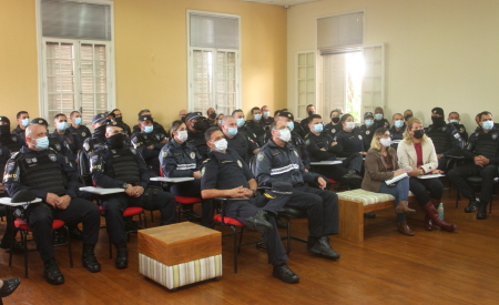 Legenda: Treinamento dos Guardas Civis Municipais sobre a Lei Maria da Penha, em Jacareí