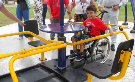 O pequeno Fábio Henrique foi um dos primeiros a utilizar os brinquedos. De acordo com a sua avó, Graciele Dantas, o equipamento irá ajudar muito nos momentos de lazer da família. “O Fábio faz parte do espectro autista e tem alguns problemas de mobilidade, então com os brinquedos convencionais fica muito difícil para ele. Agora, com os brinquedos adaptados, vai ser de grande ajuda. Ele já está se divertindo, inclusive”, explica.