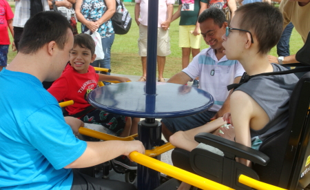 A Prefeitura de Jacareí, por meio da Secretaria de Assistência Social, inaugurou, nesta terça-feira (24), dois kits de brinquedos adaptados para pessoas com deficiência, sendo um no Parque da Cidade e outro no Parque dos Eucaliptos. Cada kit contém um carrossel, um gira-gira e um balanço adaptado.