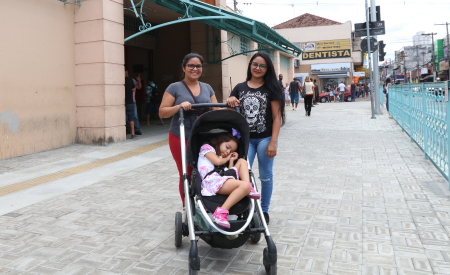 A mãe da pequena Maria Luiza, que ainda anda pela cidade dentro do carrinho, afirmou que melhorou muito a nova calçada. “O piso não está escorregadio e para nós, que somos mães, aumenta a segurança dos pais e das crianças”, compartilha Helena Luz dos Reis, moradora do Jardim Paraíba.