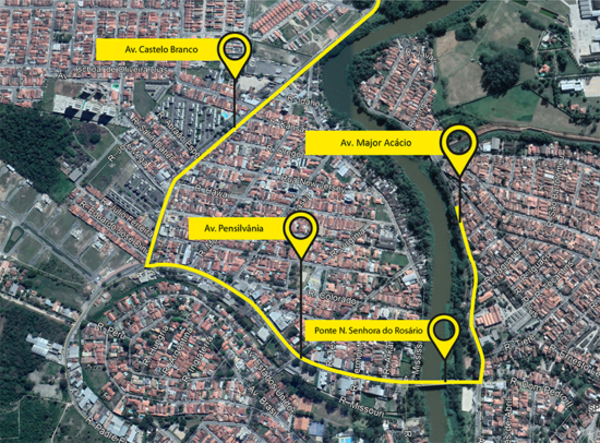 Trecho 5 – Av. Major Acácio – Jardim Emília: Inicia na margem direita do Rio Paraíba do Sul, onde será desenvolvido o projeto de revitalização da orla, atravessa sobre o rio próximo à Ponte Nossa Senhora do Rosário, e segue pela Avenida Pensilvânia, até encontrar a ciclovia a ser implantada através do projeto de duplicação da Avenida Humberto de Alencar Castelo Branco.