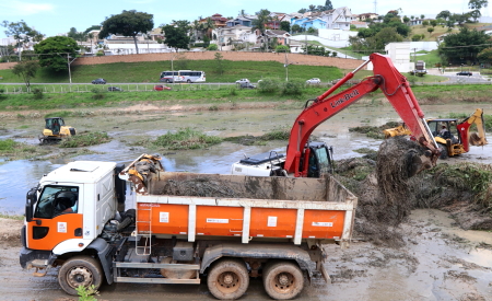 Neste último fim de semana, entre sábado (19) e domingo (20), equipes da Prefeitura de Jacareí estiveram no local com maquinário adequado como retroescavadeira, trator e caminhões, e realizaram 123 viagens de remoção de detritos diversos, arrastados pelas águas.