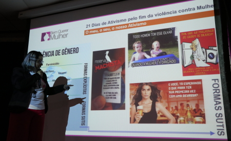 A palestra principal, com o tema ‘O meu, o seu, o nosso ativismo pelo fim da violência contra a mulher’, foi ministrada pela assistente social Adriana Acioly, do programa ‘Bem Querer Mulher’. Ao final, o público presente pôde fazer perguntas à palestrante e debater sobre o tema.