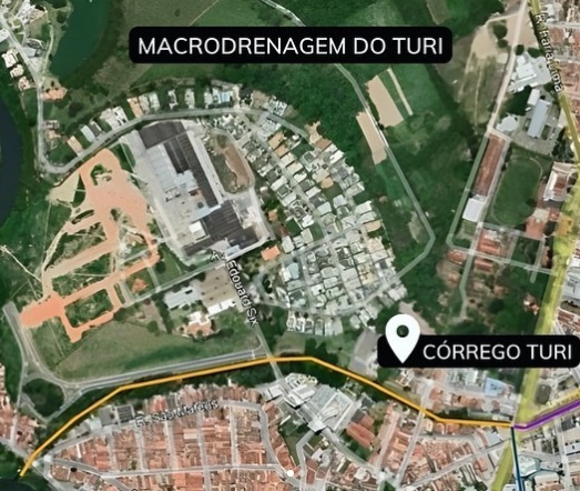 Legenda: Projeto de macrodrenagem no Córrego do Turi. Obras de macrodrenagem no São João