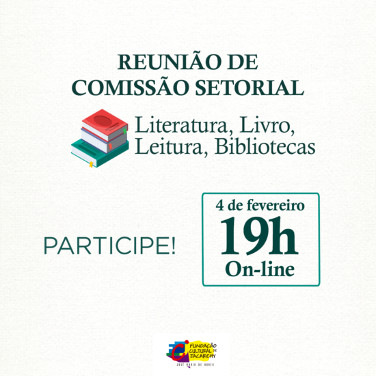 Nesta quinta-feira (4), será realizada a primeira reunião de 2021 da Comissão Setorial de Literatura, Livro, Leitura e Bibliotecas. O encontro será on-line, às 19h e aberto para toda a população. Os interessados podem acessar este link.