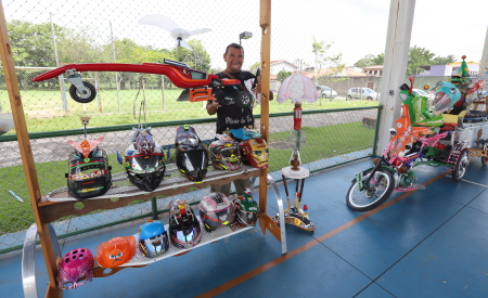 O catador de materiais recicláveis, Mario Reis Santos Soares, 60 anos, foi um dos participantes da edição 2023 do Programa Comunidade Empreendedora, no Parque Meia-Lua.