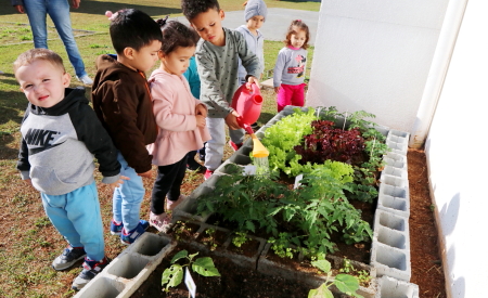 “Os educandos podem aprender sobre e como cuidar do meio ambiente, minimizar o desperdício, economizar água, reciclar materiais e cuidar de uma composteira”, disse, acrescentando que a horta incentiva o trabalho em equipe, pois são necessários cuidados desde a construção dos canteiros até a colheita e degustação dos alimentos nas refeições do próprio cardápio da Alimentação Escolar.