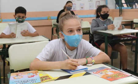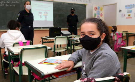 A sala não estava lotada, devido ao distanciamento recomendado para evitar o contágio da Covid-19. Mas os alunos presentes passaram a ter uma função importante como multiplicadores das informações recebidas. “Espero não precisar, mas posso ajudar passando os números (de emergência) para meus amigos e para muitas pessoas. Vou colocar os números em vários lugares: na geladeira, no celular…”, diz Mariana Santos Palmos, de 9 anos.