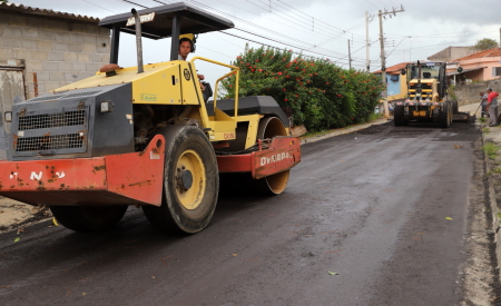 Legenda: Rua Álvares de Azevedo recebe novo asfaltamento, na Vila Zezé