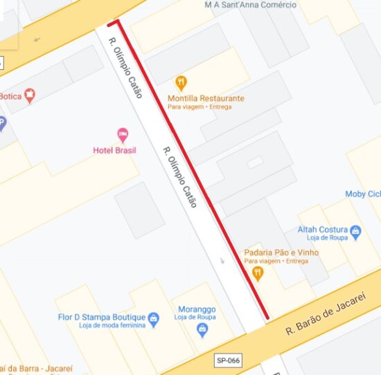 Legenda: Mapa ilustrativo do trecho em obras, na Rua Olímpio Catão, centro de Jacareí.