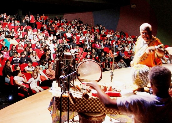 Ator João Acaiabe contou histórias para crianças e adultos no palco da Sala Ariano Suassuna – Foto: Valter Pereira/PMJ