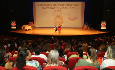 O Teatro Ariano Suassuna recebeu os professores da rede municipal de ensino de Jacareí para a apresentação do “Seminário de Boas Práticas 2023 – Matematic@ndo ODS”, na última segunda-feira (27). Foram apresentados, para públicos diferentes (manhã, tarde e noite), vários vídeos de atividades desenvolvidas nas escolas durante o ano.