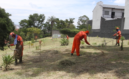 Legenda: Serviços da Secretaria do Meio Ambiente, sendo realizados nas ruas e demais espaços públicos de Jacareí