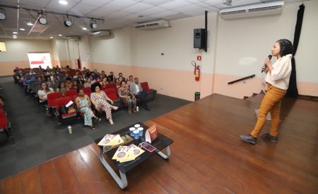 Legenda: Qualificação em Saúde Integral da População Negra, no auditório da Secretaria Municipal de Educação
