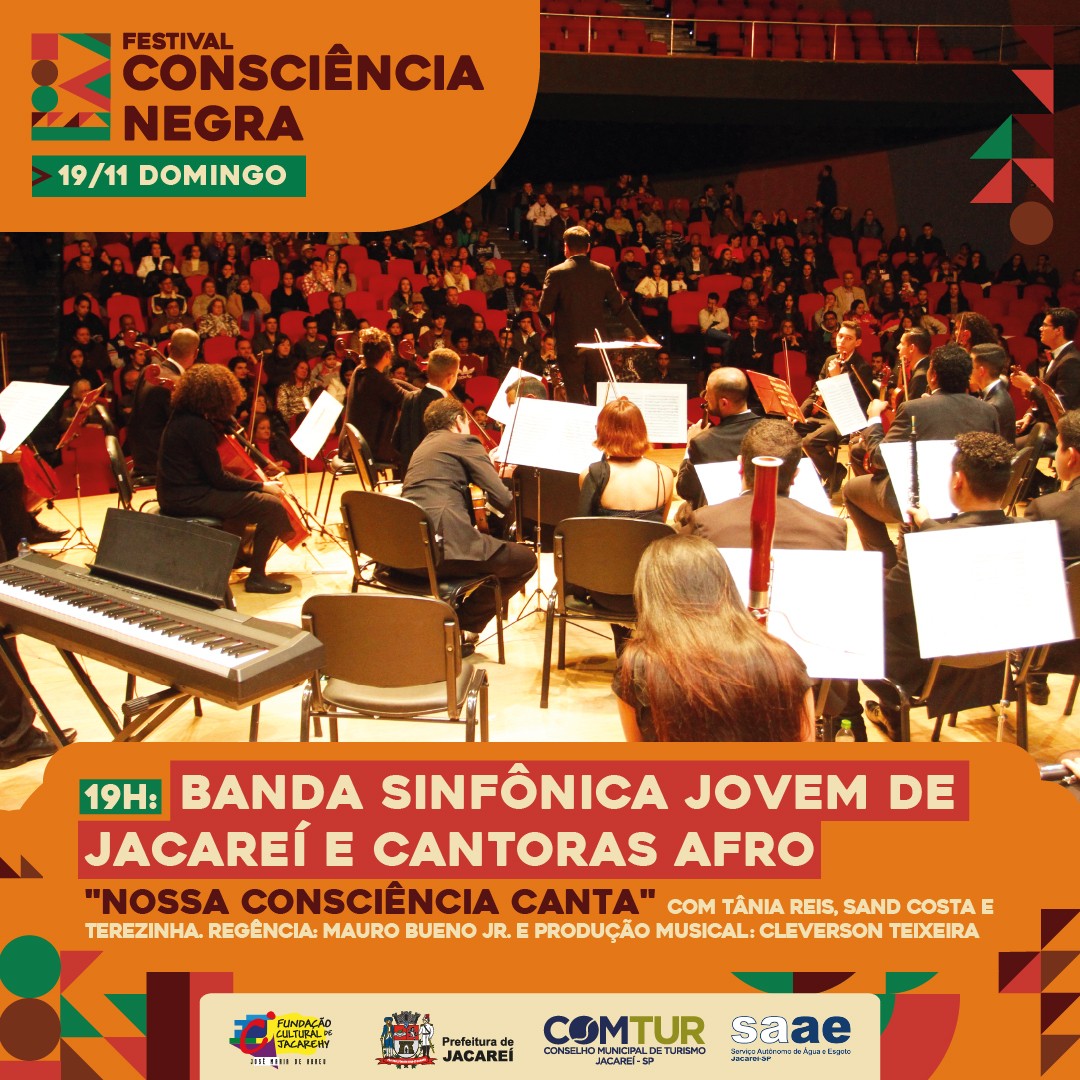 Neste mês de novembro, a Prefeitura Municipal de Jacareí, juntamente com a Fundação Cultural de Jacarehy – José Maria de Abreu, e a Subsecretaria de Igualdade e de Direitos Humanos, recebem o show da Banda Sinfônica Jovem De Jacareí e Cantoras Afro – “Nossa Consciência Canta” em homenagem ao “Dia Nacional da Consciência Negra”.