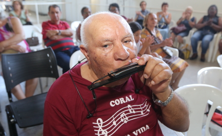 As atividades servem para demonstrar o quanto a arte e a cultura podem rejuvenescer o ser humano. Benedito Ribeiro dos Santos que o diga. Com 83 anos, o seu Dito Ramiro, como é mais conhecido, segura a gaita, sua fiel companheira e relembra sua trajetória como músico ao longo da vida. “A música sempre vai ser a minha maior alegria”, não hesita em dizer.
