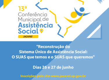 O Conselho Municipal de Assistência Social, em parceria com a Prefeitura de Jacareí, por meio da Secretaria de Assistência Social, irá realizar, nos dias 26 e 27 de junho, a 13ª Conferência Municipal de Assistência Social de Jacareí. O evento é aberto ao público e as inscrições podem ser realizadas pela internet (clique aqui). A […]