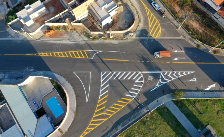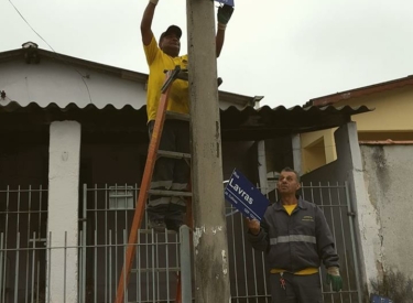 Santana do Pedregulho recebe pintura e placas de sinalização viária, em Jacareí