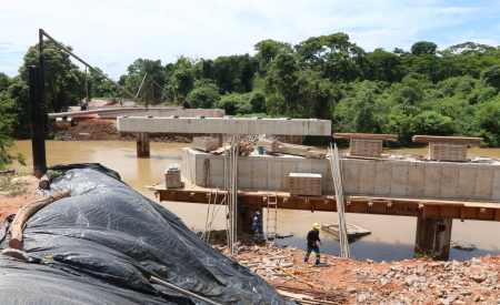 A execução da ponte segue conforme previsto em cronograma, tendo já alcançado 100% da execução das fundações, contenção de barrancos e apoios. Para o trecho do viário, dos dois lados, tanto da Av. Castelo Branco, como da Av. Malek Assad, está prevista a conclusão dos serviços de drenagem e infraestrutura de iluminação para, em seguida, seguir com a execução de pavimentação, passeios e ciclovias.