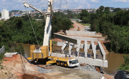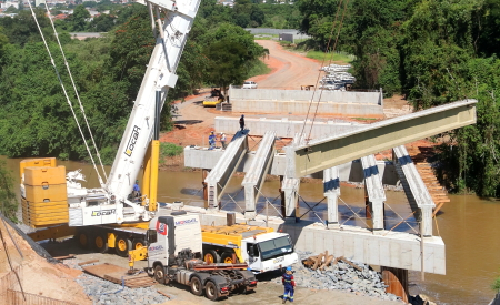 Legenda: Vigas sendo instaladas na terceira ponte sobre o Rio Paraíba