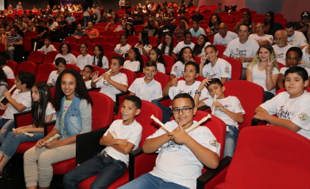 Na noite de quarta-feira (18), pais e familiares assistiram a última apresentação de 2019 dos alunos que integram o projeto ‘Tocando o Futuro’.