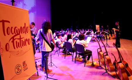 O projeto Tocando o Futuro é uma iniciativa do Centro de Ações Preventivas “Semeadores da Paz”, da Secretaria de Segurança e Defesa do Cidadão. Este mês, o projeto comemora 15 anos, com o objetivo de promover a cidadania por meio da inicialização musical.
