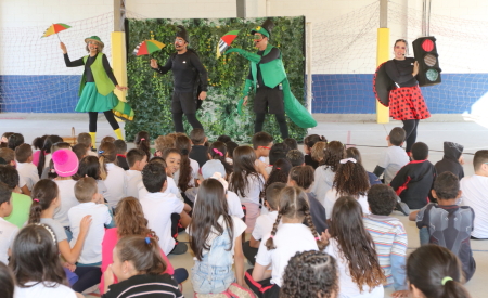 Embora o projeto “Agente de Trânsito Mirim” seja focado nos alunos do quarto ano, as atividades lúdicas e educativas nas escolas foram direcionas para diversas faixas etárias. Uma das ações mais bem recebidas neste ano foi a visita do grupo Cia Sopa de Comédia. Nas apresentações, a trupe teatral se veste de animais como jacaré, tartaruga e joaninha para falar por meio de parábolas e canções com as crianças, num espetáculo divertido e colorido.