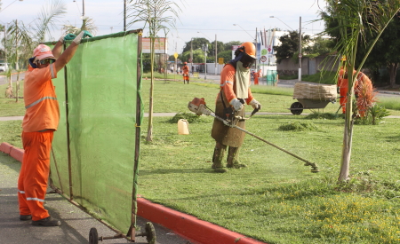 Legenda: Serviços da Secretaria do Meio Ambiente, sendo realizados nas ruas e demais espaços públicos de Jacareí