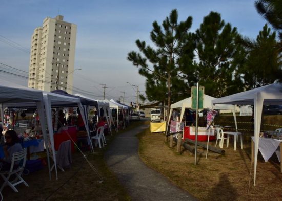 No último sábado (12), a feira foi realizada no bairro Villa Branca, com a participação de 67 expositores. Nas barracas espalhadas na área de lazer da Avenida das Letras tinha um pouco de tudo: doces caseiros, tapioca, tortas, brigadeiros, sabonetes, tapetes, crochê, tricô, fuxico, bonecas de pano, biscuit, entre outros.
